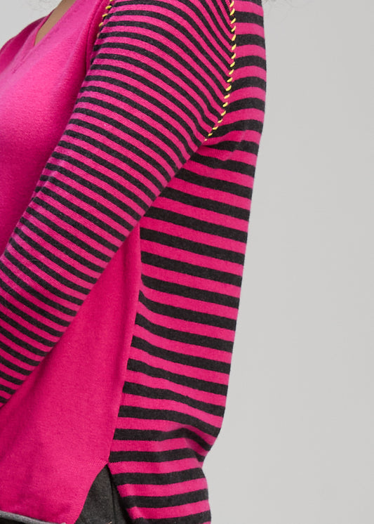 Zaket & Plover V Neck Striped Jumper - Magenta/Charcoal - Sizes: XS S M L