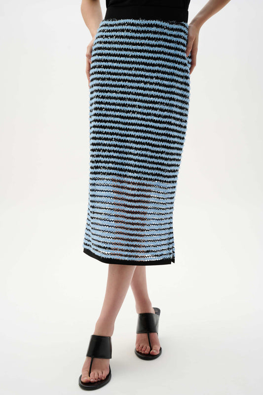 Joseph Ribkoff Stripe Pencil Skirt With Side Slit - Blue/Black - 10 12