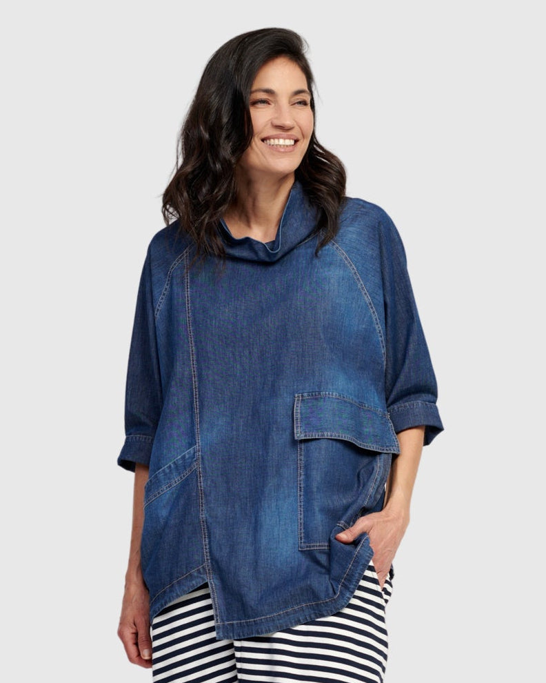 Alembika Cowl Neck Pocket Tunic - Denim - Sizes: M XL