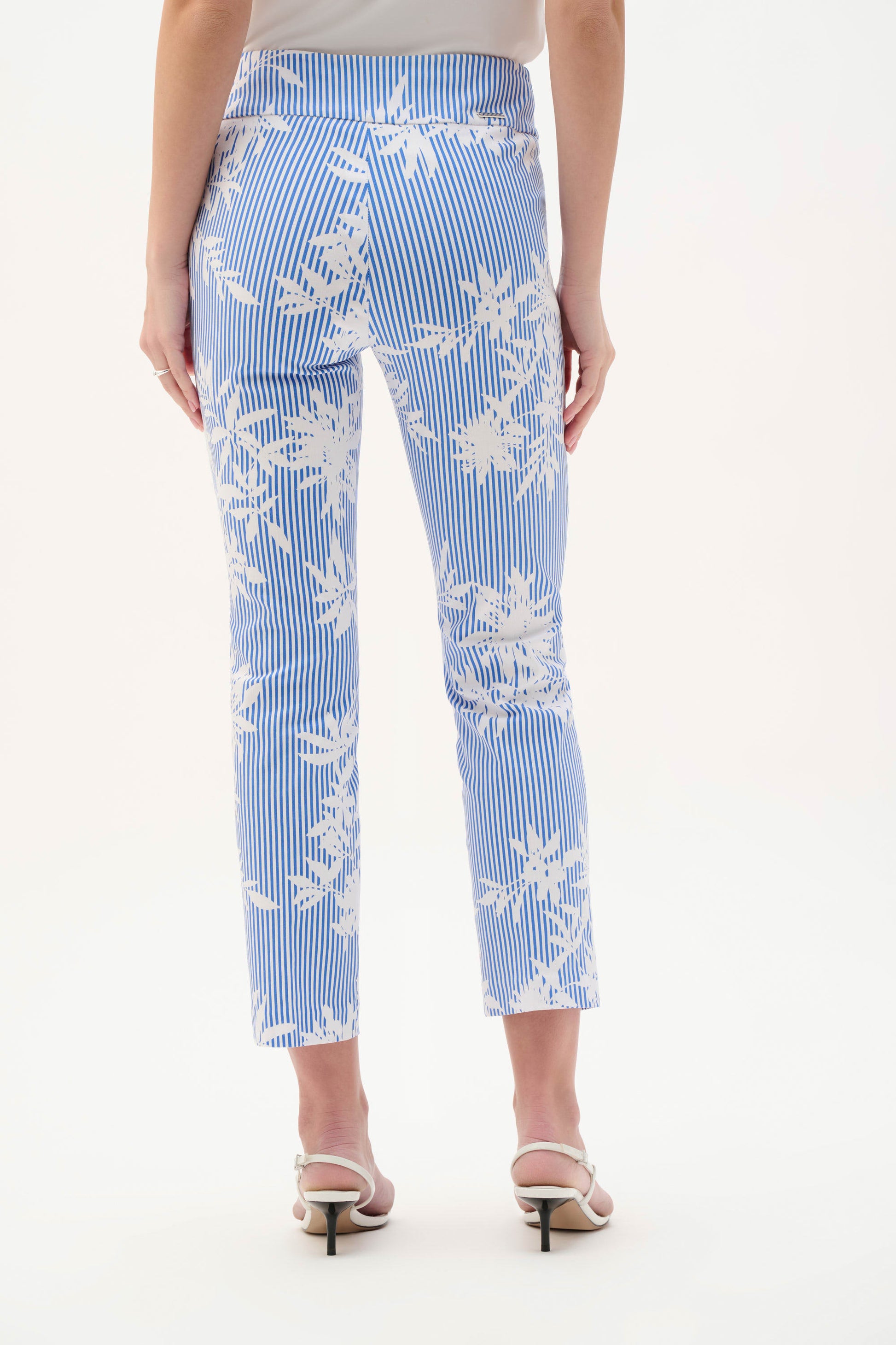 Joseph Ribkoff Printed Straight Pull-On Pants - Vanilla/Blue - Sizes: 8 10 12 14 16