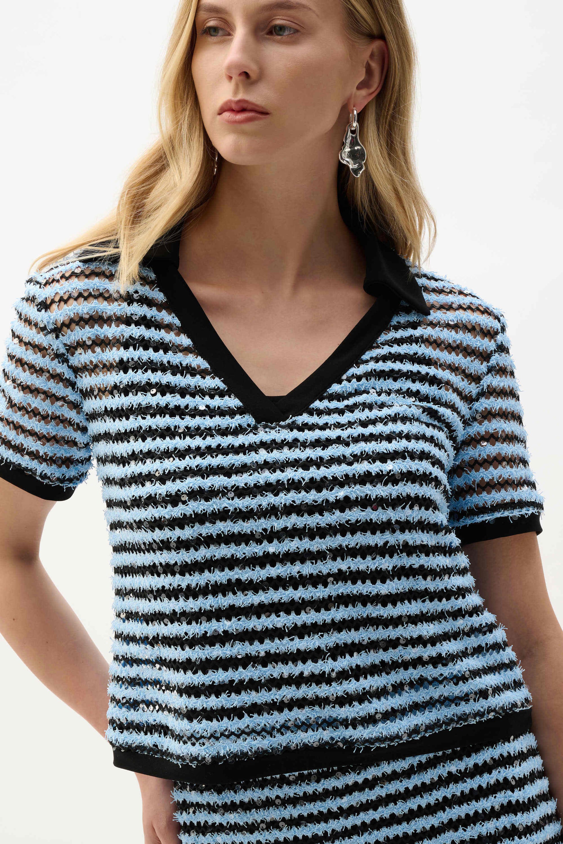 Joseph Ribkoff Stripe Boxy Top With Polo Collar - Sizes: 8 10 12