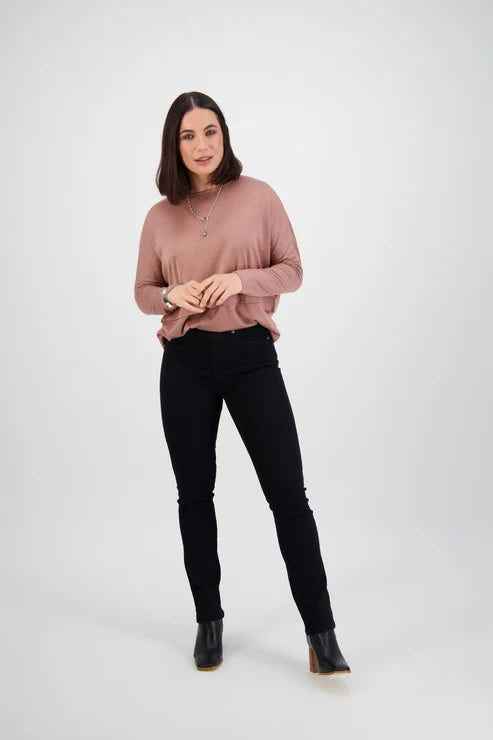 • Vassalli Slim Leg Full Length Denim Pull On Jean in Black Denim.