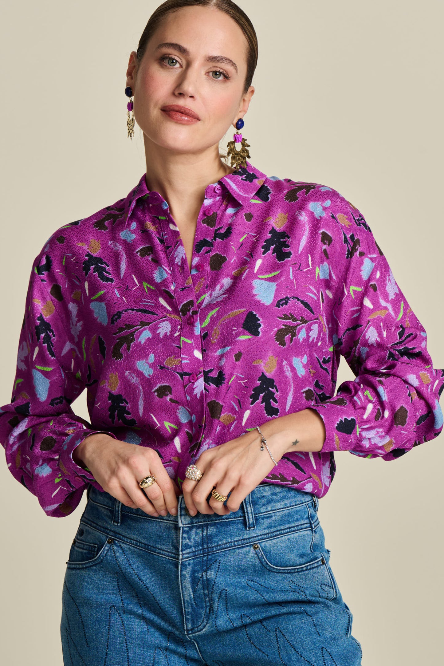 Another beautiful silky shirt from Pom Amsterdam in one of the label's famous signature prints. Perfect with your jeans or under a jacket for a more feminine corporate look.