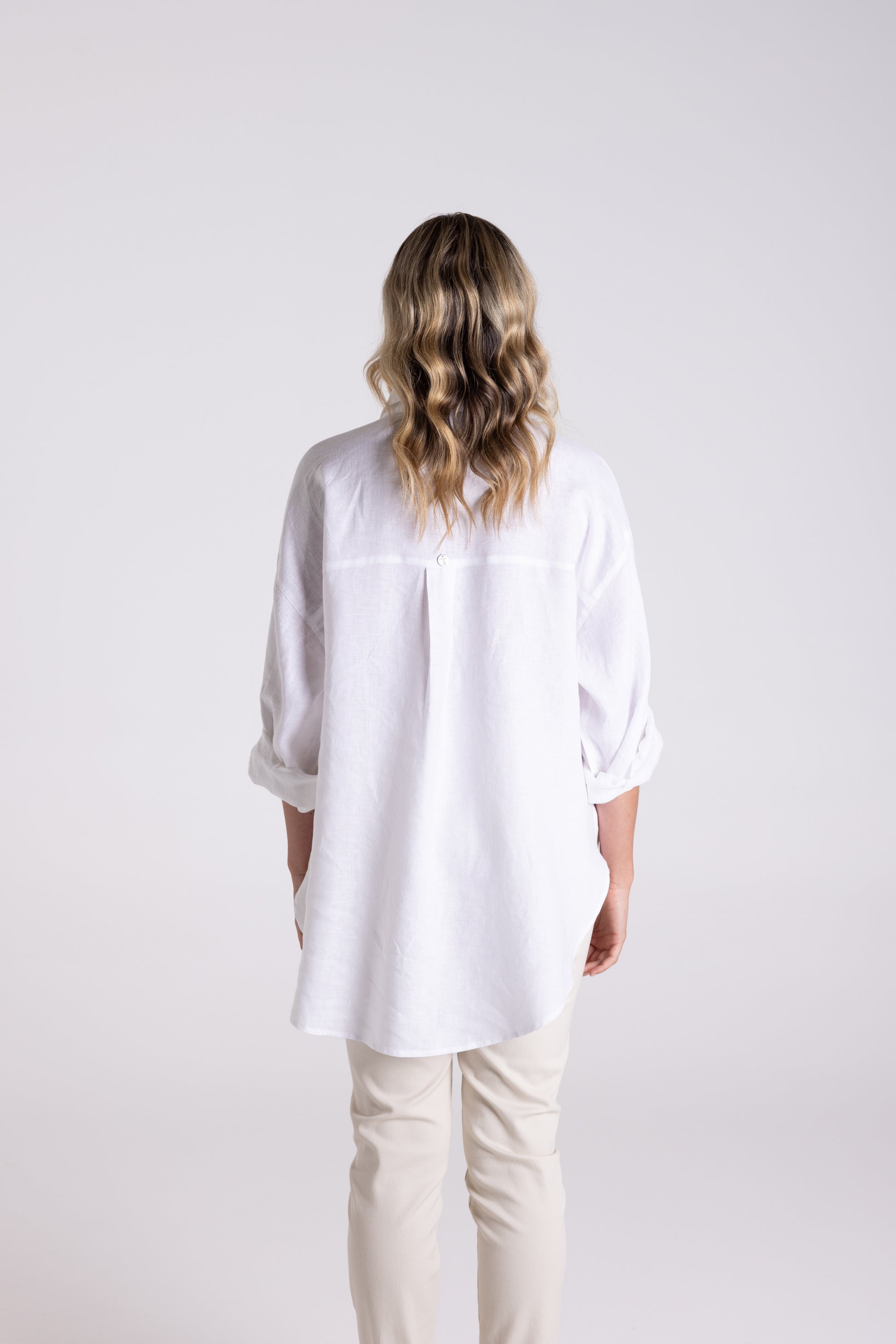 Two-T's White Oversized Linen Shirt - Sizes: 10 12 14