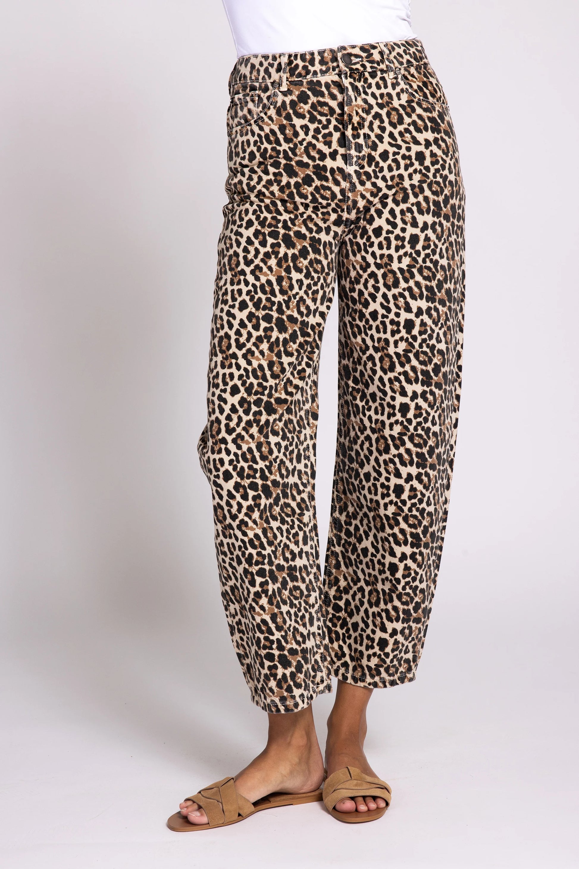 Zhrill Zhiza Sand Leopard Print Wide Leg 7/8 Jean - Sizes: S