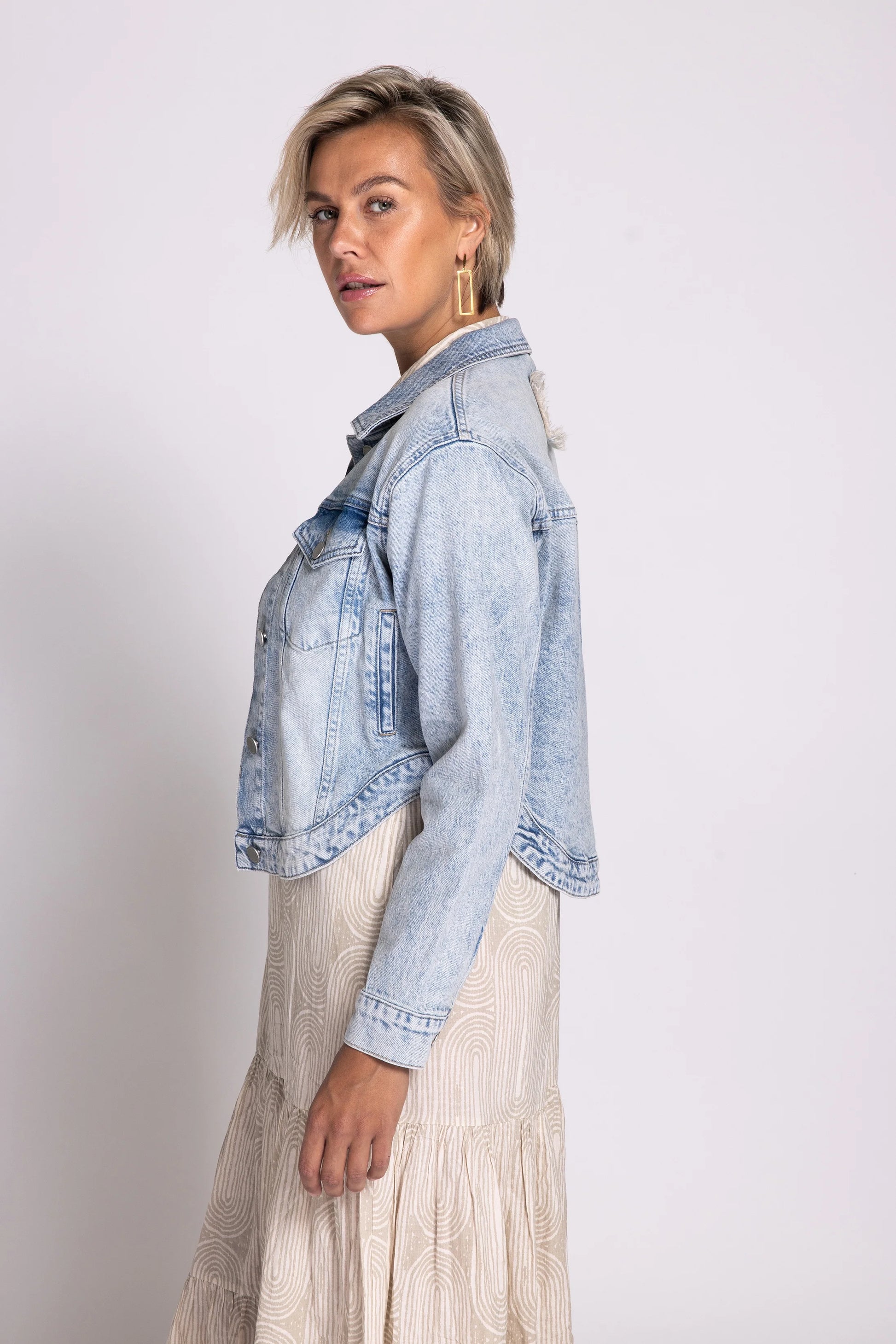 Zhrill Zhnissa Washed Blue Curved Hem Denim Jacket - Sizes: XS S L XL