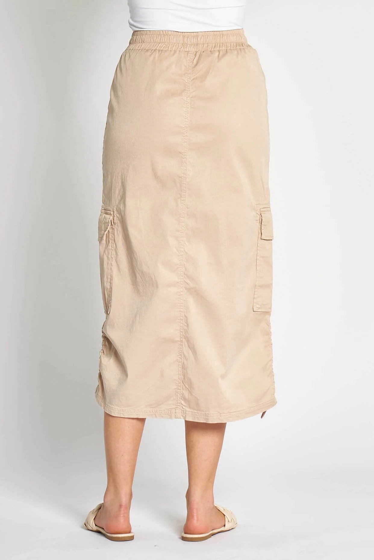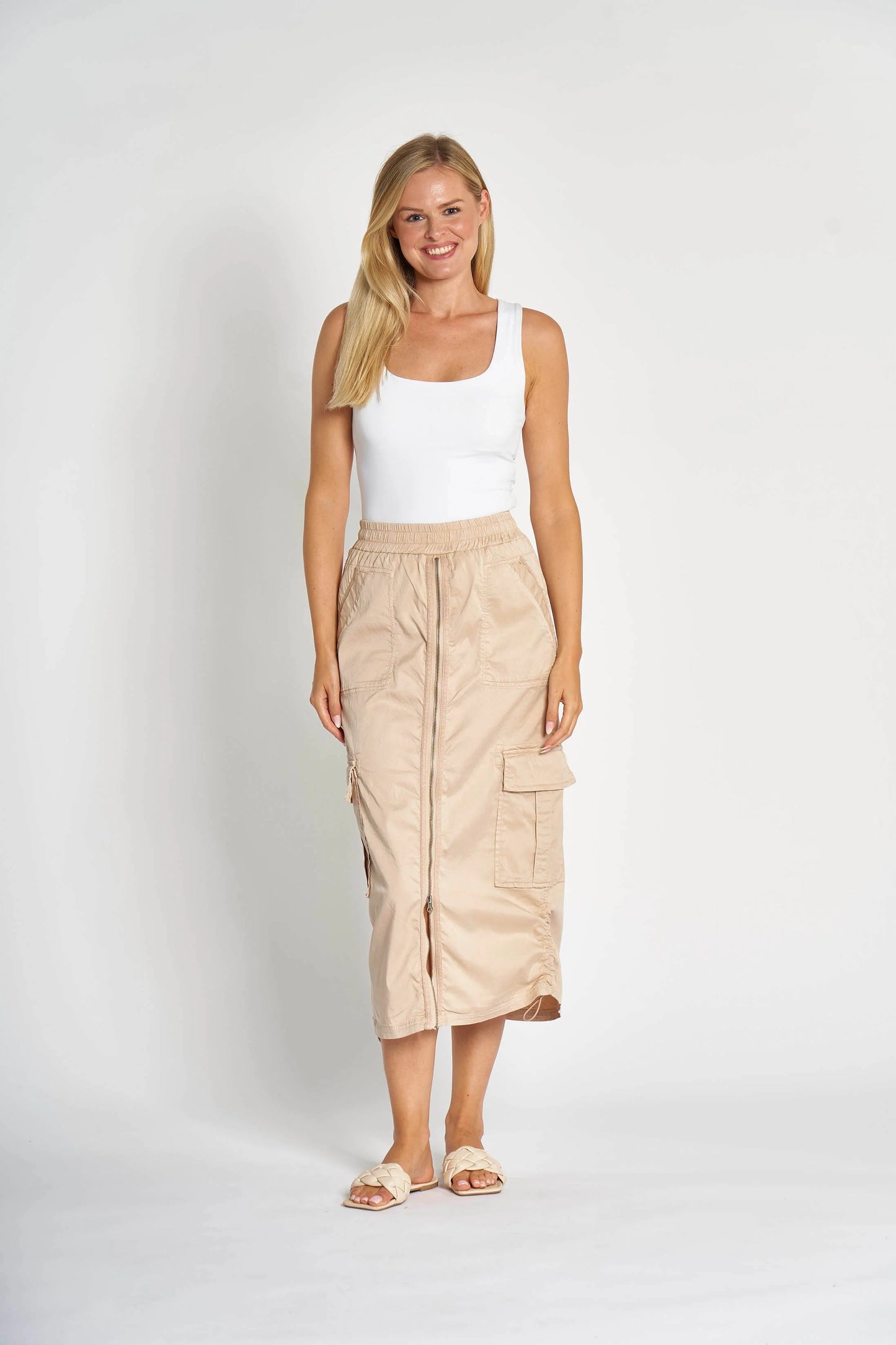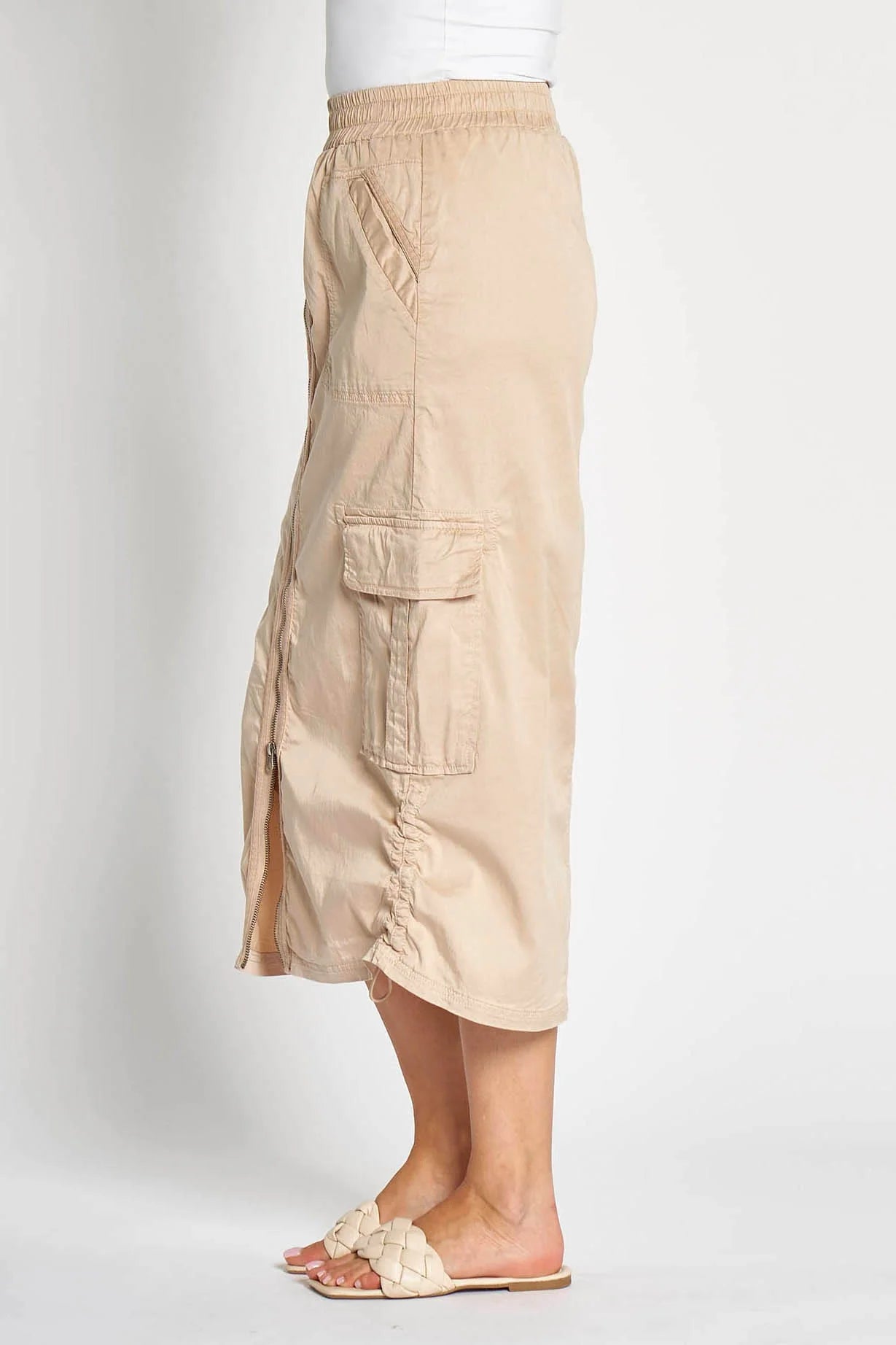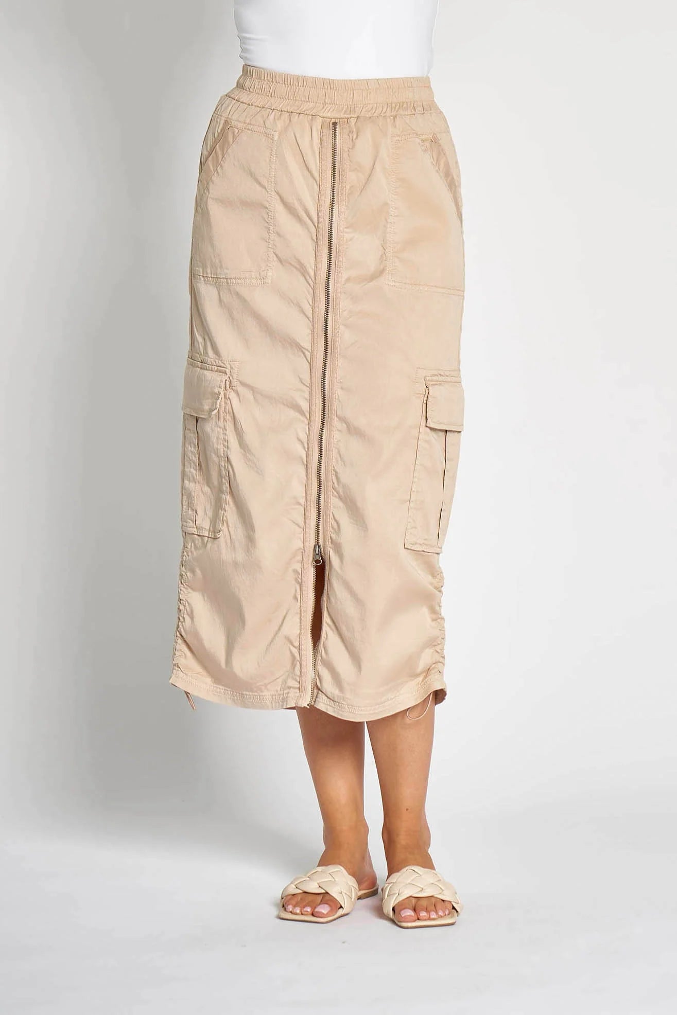 Zhrill ZHRENA Sand Cotton Drill Zip Midi Skirt - Sizes: XS XL